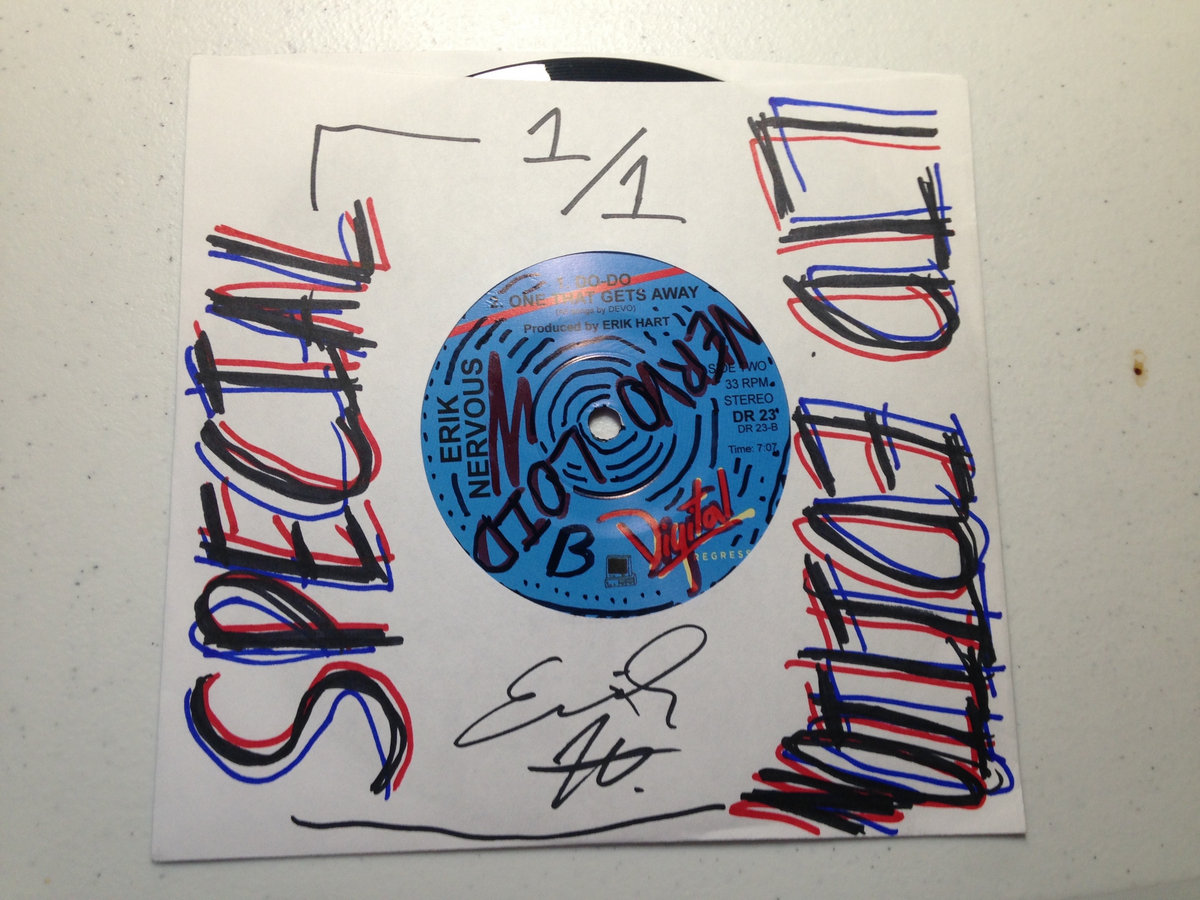 The last copy of this record i currently possess. Featuring a one of a kind, hand drawn sleeve with defaced inner sleeve and center labels. standard black vinyl